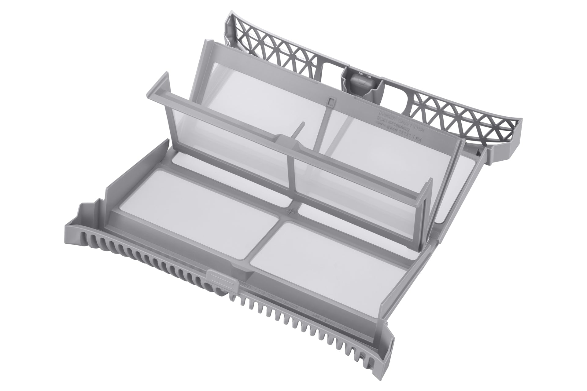 Mantieni facilmente la tua asciugatrice e ottimizza le prestazioni di asciugatura e la sicurezza. Il filtro 2-in-1, con doppio strato a rete, intrappola polvere e fibre.
