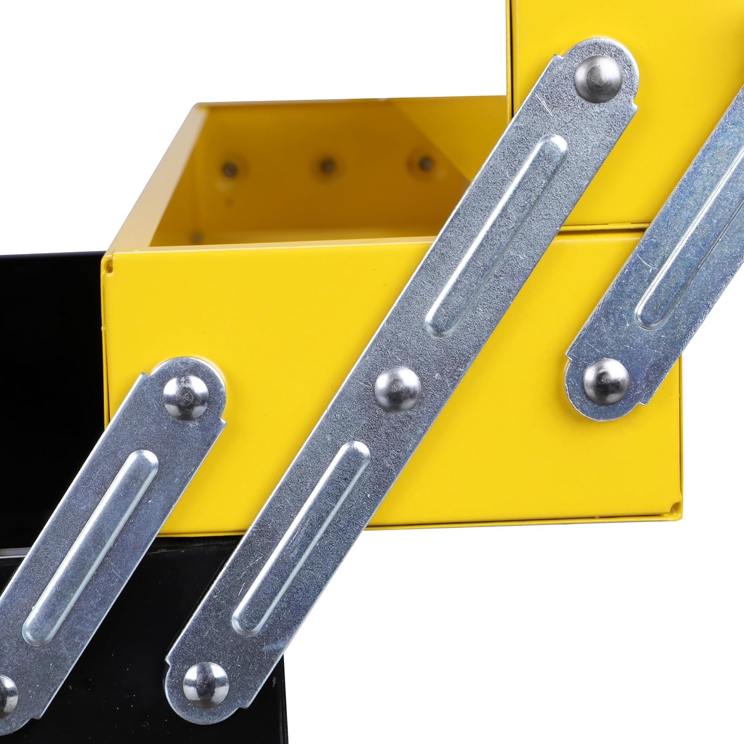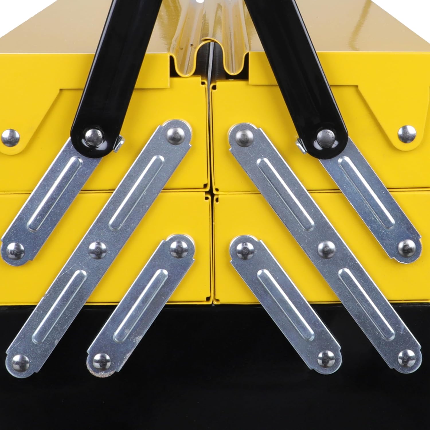 • Le cerniere in metallo consentono un'ampia apertura per facilitare l'accesso agli utensili in tutte le parti della cassetta;