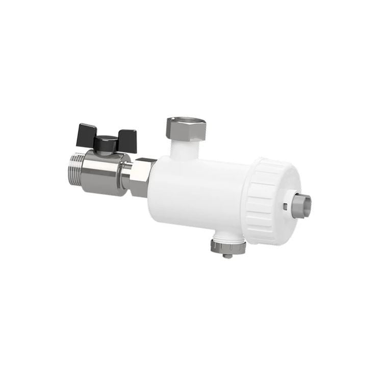 Il filtro defangatore magnetico IDRAMAG MINI, è un prodotto brevettato, ed oltre ad avere un magnete di neodimio da 7.000 GAUSS in grado di attrarre un grosso quantitativo di ossidi di ferro, contiene una rete filtrante da 450 micron in grado di trattenere anche impurità non magnetiche. Il deflettore interno permette al flusso dell'acqua di passare per tutta la lunghezza del magnete e della rete filtrante, permettendo una perfetta filtrazione ed evitando intasamenti improvvisi. Se installato orizzontalmente, grazie al magnete estraibile ed alla rete filtrante aperta sul lato dello scarico, è possibile effettuare la pulizia del filtro defangatore in controcorrente senza aprirlo. Inoltre, la rete aperta su un lato, permette di accumulare un quantitativo superiore di ossidi metallici. La girella singola nell'uscita del filtro permette un'installazione ancora più compatta. La massima efficacia nella separazione degli ossidi di ferro con il defangatore magnetico IDRAMAG MINI si ottiene aggiungendo all'acqua del circuito il protettivo IDRATERM 110. Si consiglia sempre di pulire l'impianto con uno dei pulitore IDRATERM. Il pacchetto PULIPRO MAG MINI contiene sia il pulitore IDRATERM 805 che il protettivo IDRATERM 110.