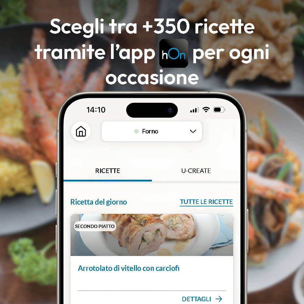 Prendi il pieno controllo del tuo forno, monitora le sue prestazioni e ricevi consigli utili con l'app hOn. Esplora una gamma di ricette disponibili, che ti consentono di sfruttare al massimo le capacità del tuo nuovo forno.
