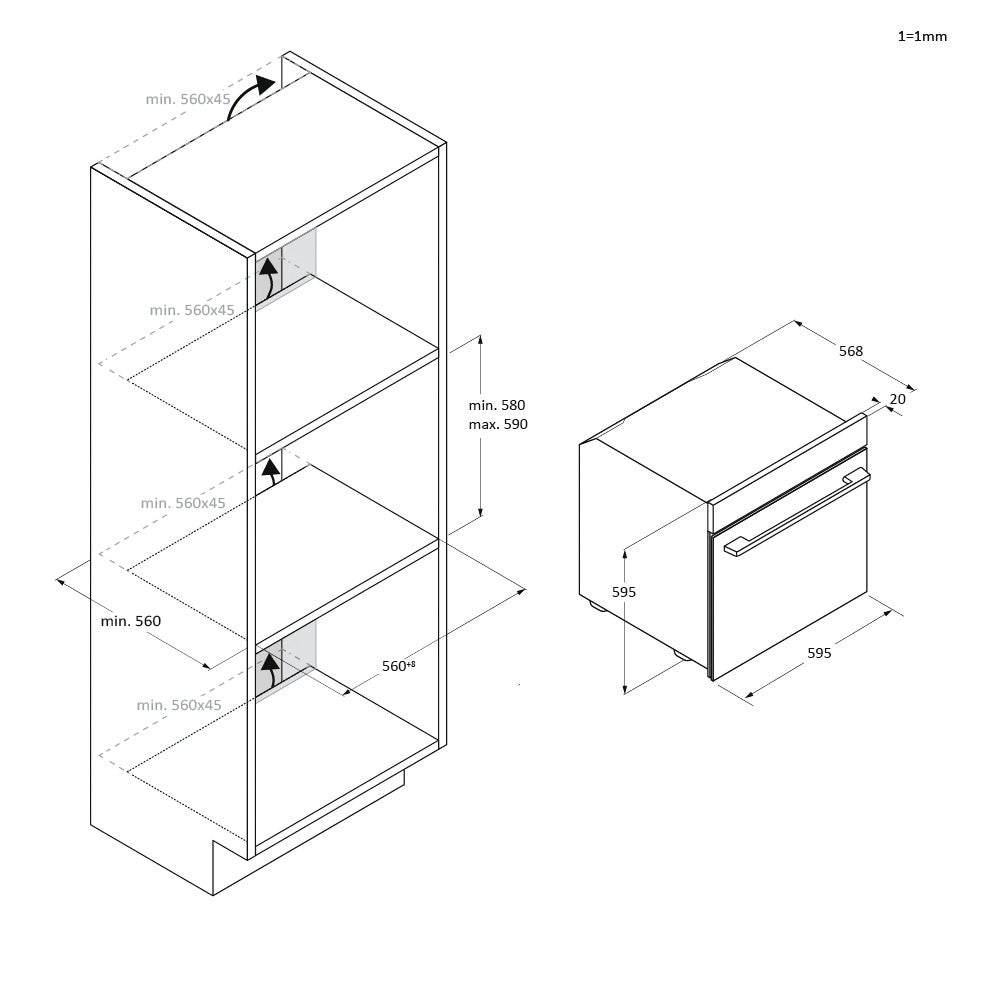 Vano incasso: 560 × 560 × 590 mm (L × P × A)