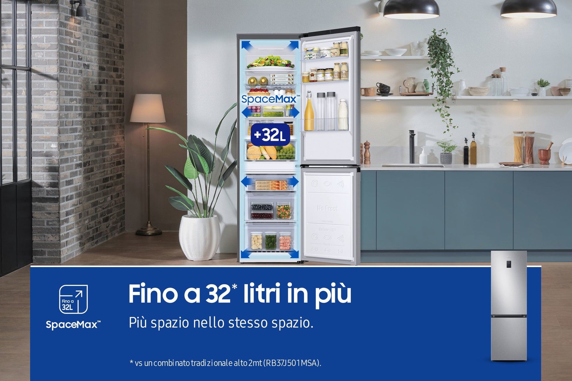 Questo frigorifero, grazie alla tecnologia SpaceMax™, garantisce una capacità interna di 344 litri. L’isolante a elevata efficienza della tecnologia SpaceMax™ consente di ridurre notevolmente lo spessore delle pareti, creando più spazio per la conservazione degli alimenti, senza antiestetiche sporgenze esterne.