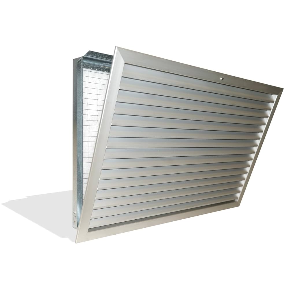 Griglie per la ripresa dell’aria costruite con alette orizzontali fisse ed inclinate a 45°, con l’inserimento di uno speciale profilo o controtelaio che permette l’alloggiamento