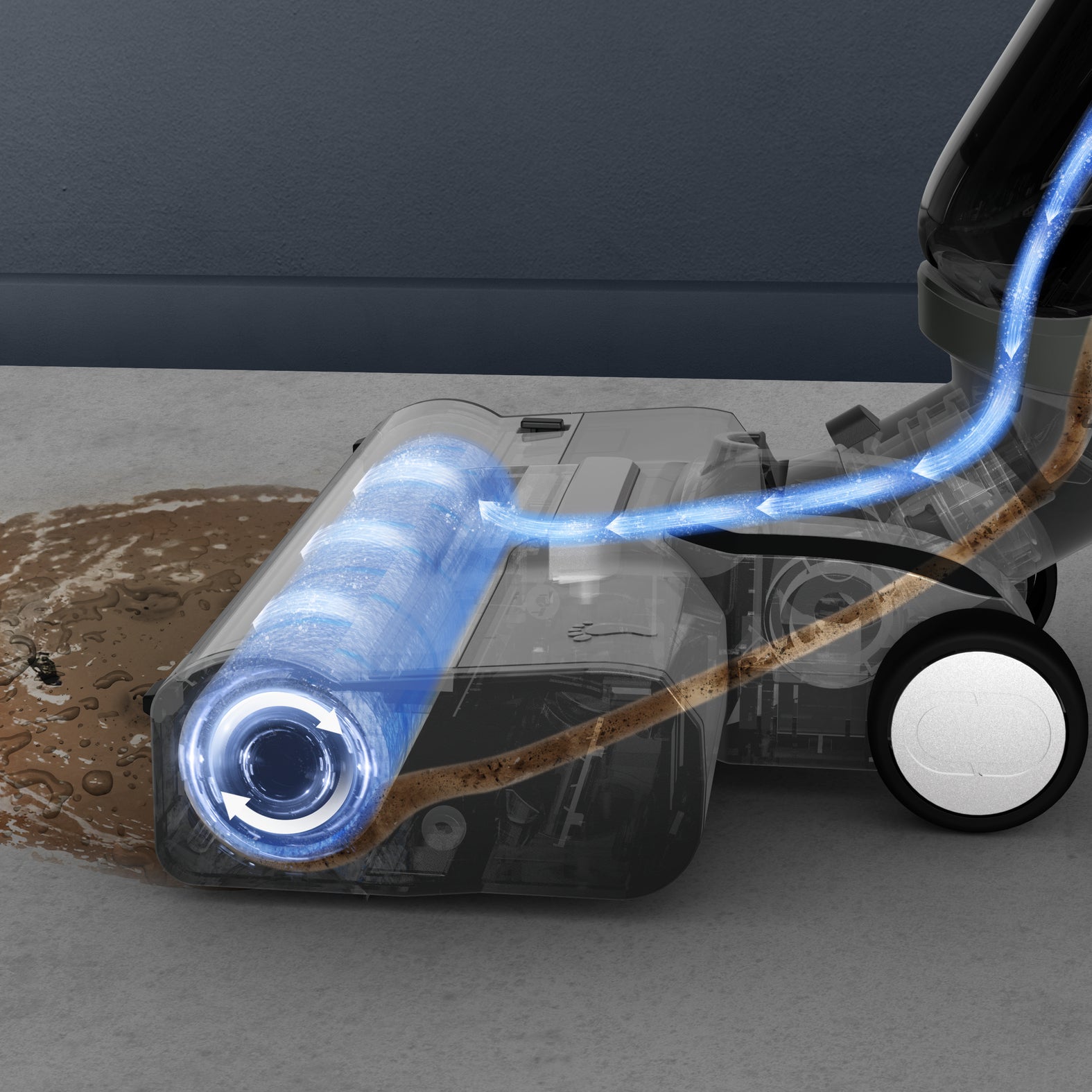 Rileva automaticamente lo sporco e adatta la potenza di aspirazione e del flusso d’acqua.