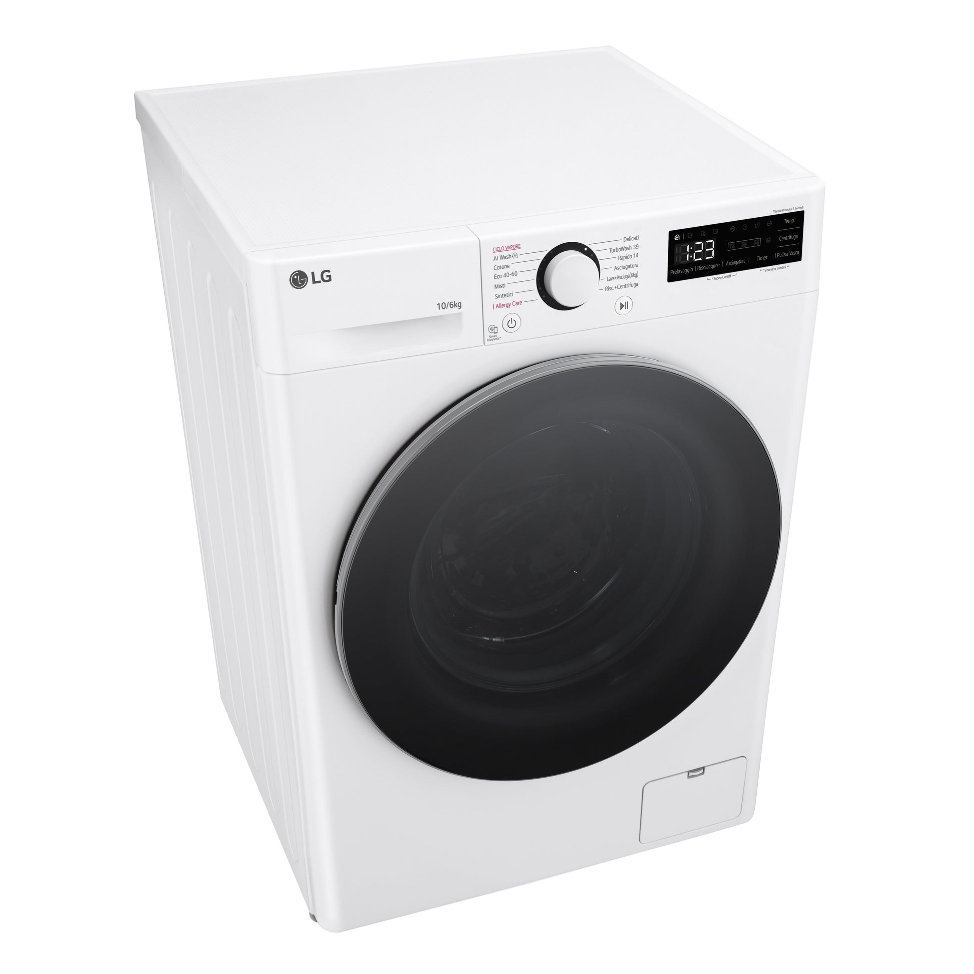LG D4R5010TSWS Lavasciuga 10/6kg AI DD, Serie R5 Classe D, 1400 giri, TurboWash 360, Vapore, Eco Hybrid, Bianca.