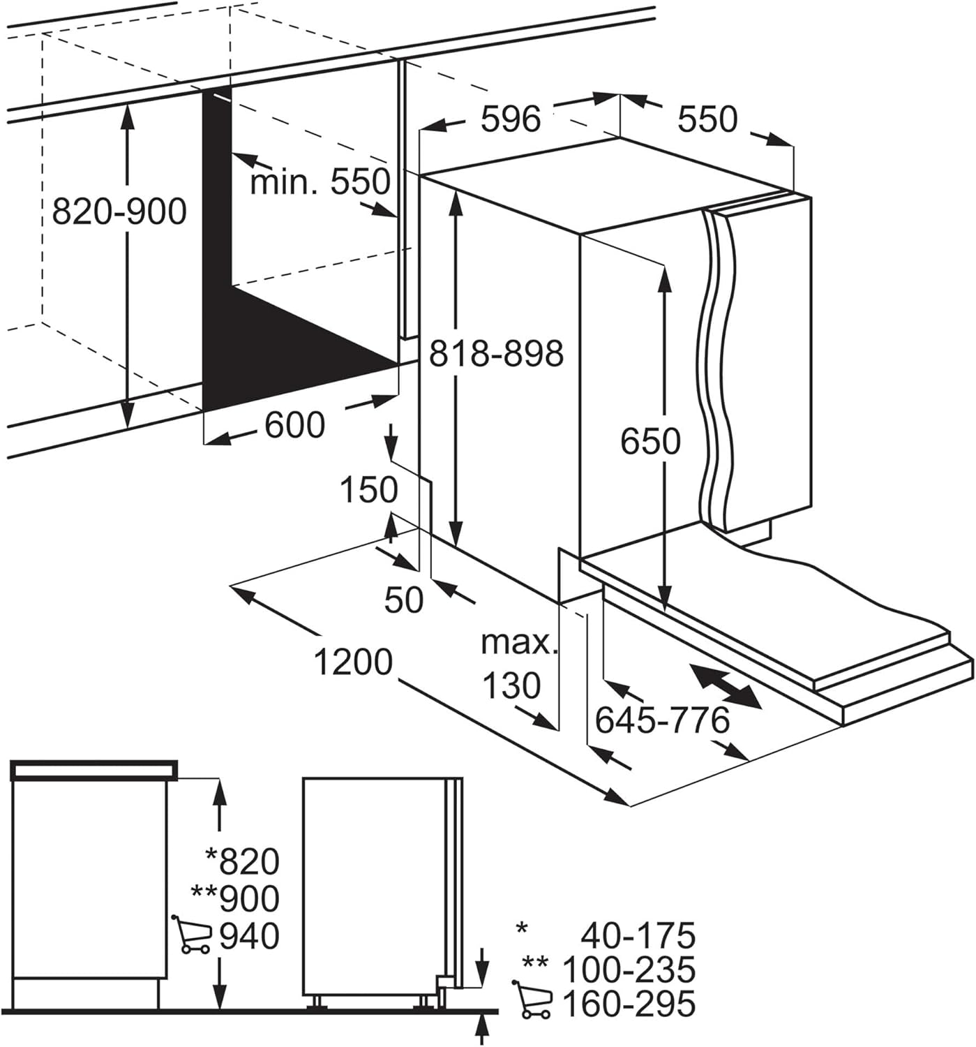 • Larghezza: 600 mm; Profondità: 550 mm; Altezza: 820 mm.