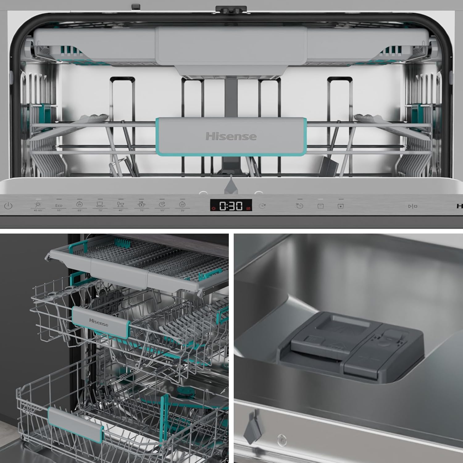 Tecnologie Hisense (lavaggio stoviglie): 15 Min Quick Wash, Anti Flood Protection, AutoDry, Automatic Programme, Eco Programme, Flexible Baskets, Motore inverter
