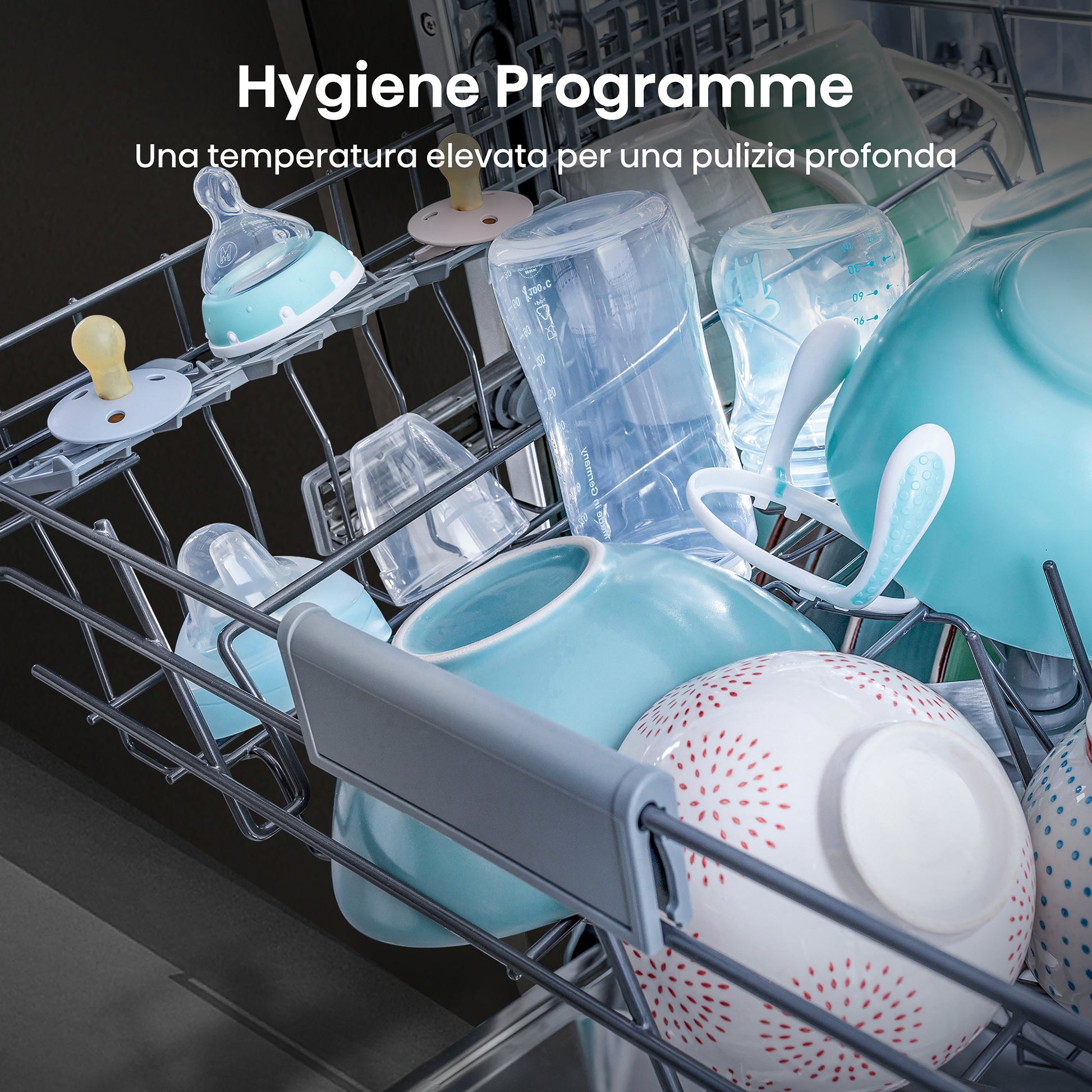 Questo programma è pensato per pulire biberon, vasetti, taglieri, e molto altro. E' progettato per quelle stoviglie che necessitano di altre temperature, tempi di lavaggio più lunghi e un risciacquo ancora più caldo.