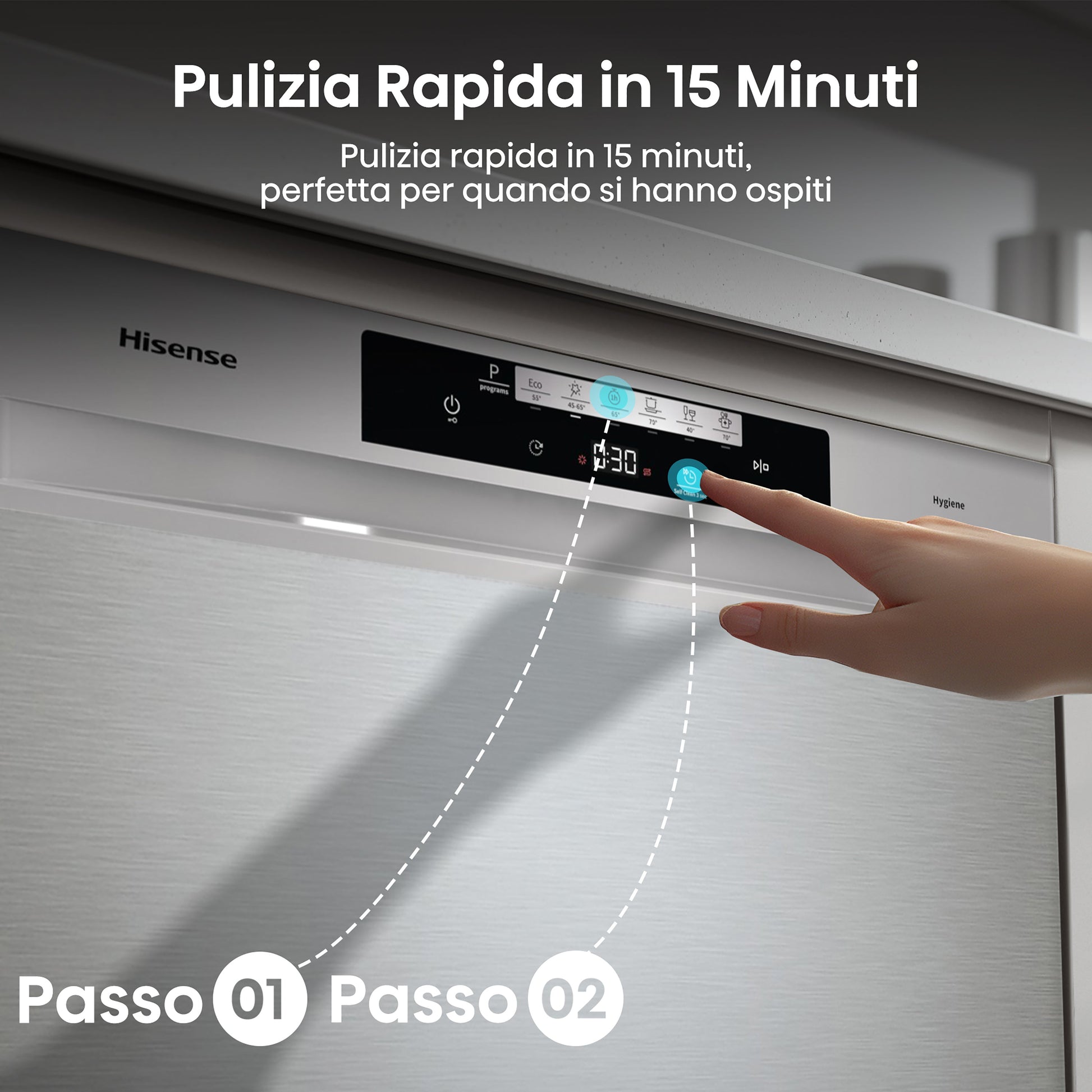 Grazie alle ultime tecnologie di Hisense, il programma Automatico regola autonomamente le tempistiche e l'intensità in base al carico e al livello di sporco.