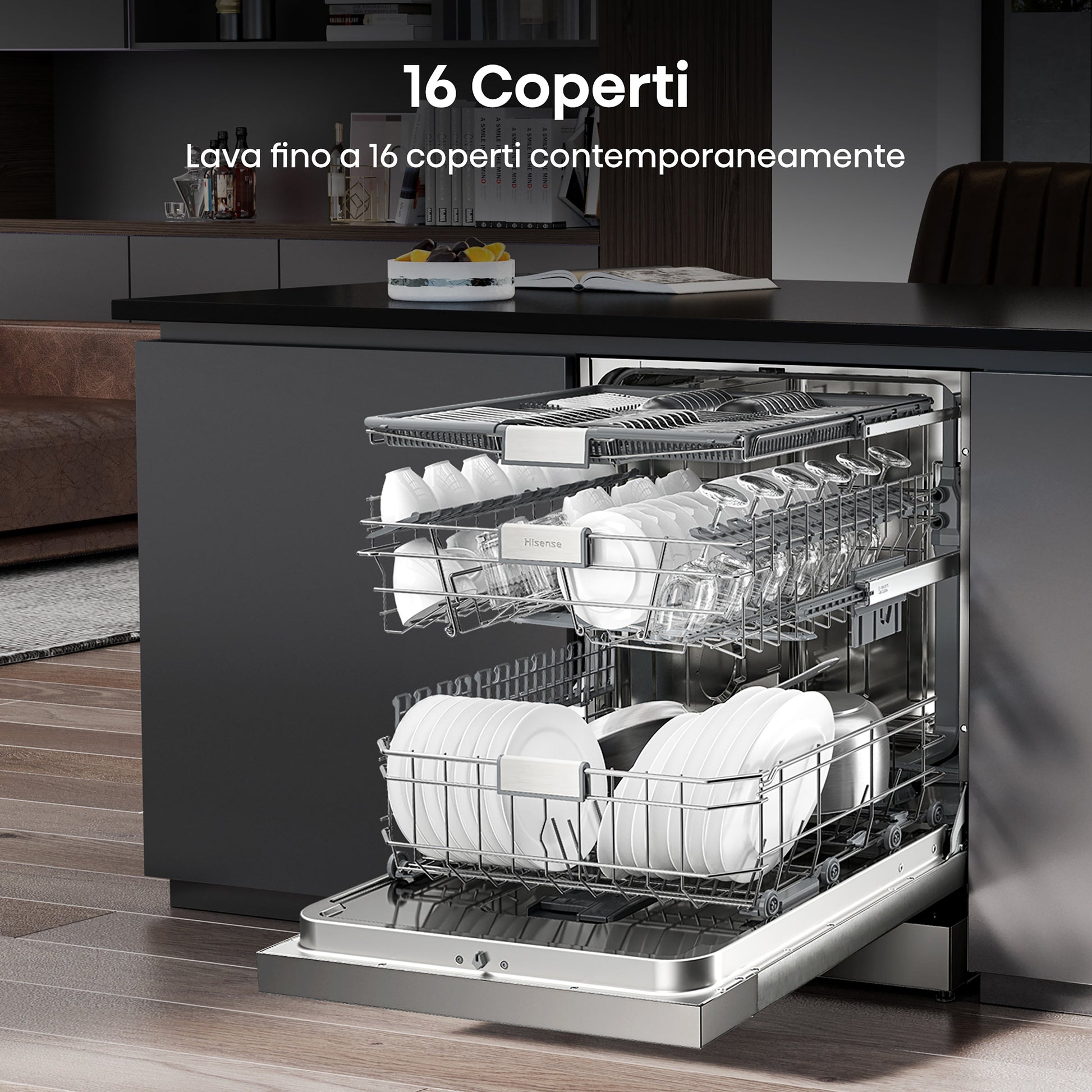 Lavastoviglie Libera Installazione Hisense HS643D90X 16 Coperti Classe D