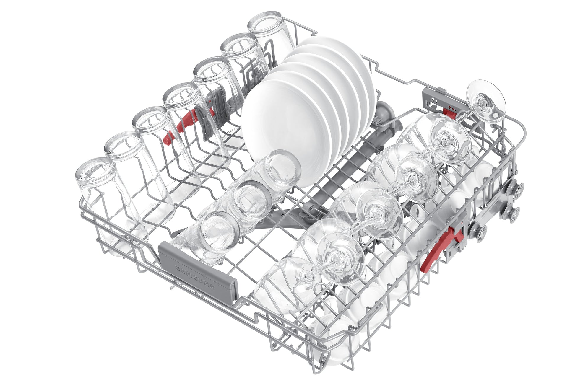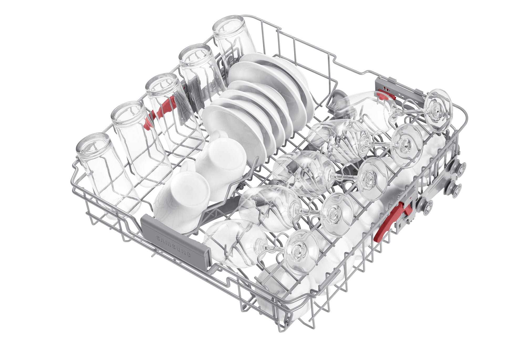 Sistema piatti, tazze e bicchieri in modo più facile e sicuro. I piedini del cestello intermedio possono essere regolati su 3 diverse angolazioni utilizzando unapposita leva, mentre quelli del cestello inferiore si piegano per fare posto a stoviglie di grandi dimensioni. E con l'apposito Porta-bicchieri anche gli oggetti più delicati, come i calici, saranno al sicuro.