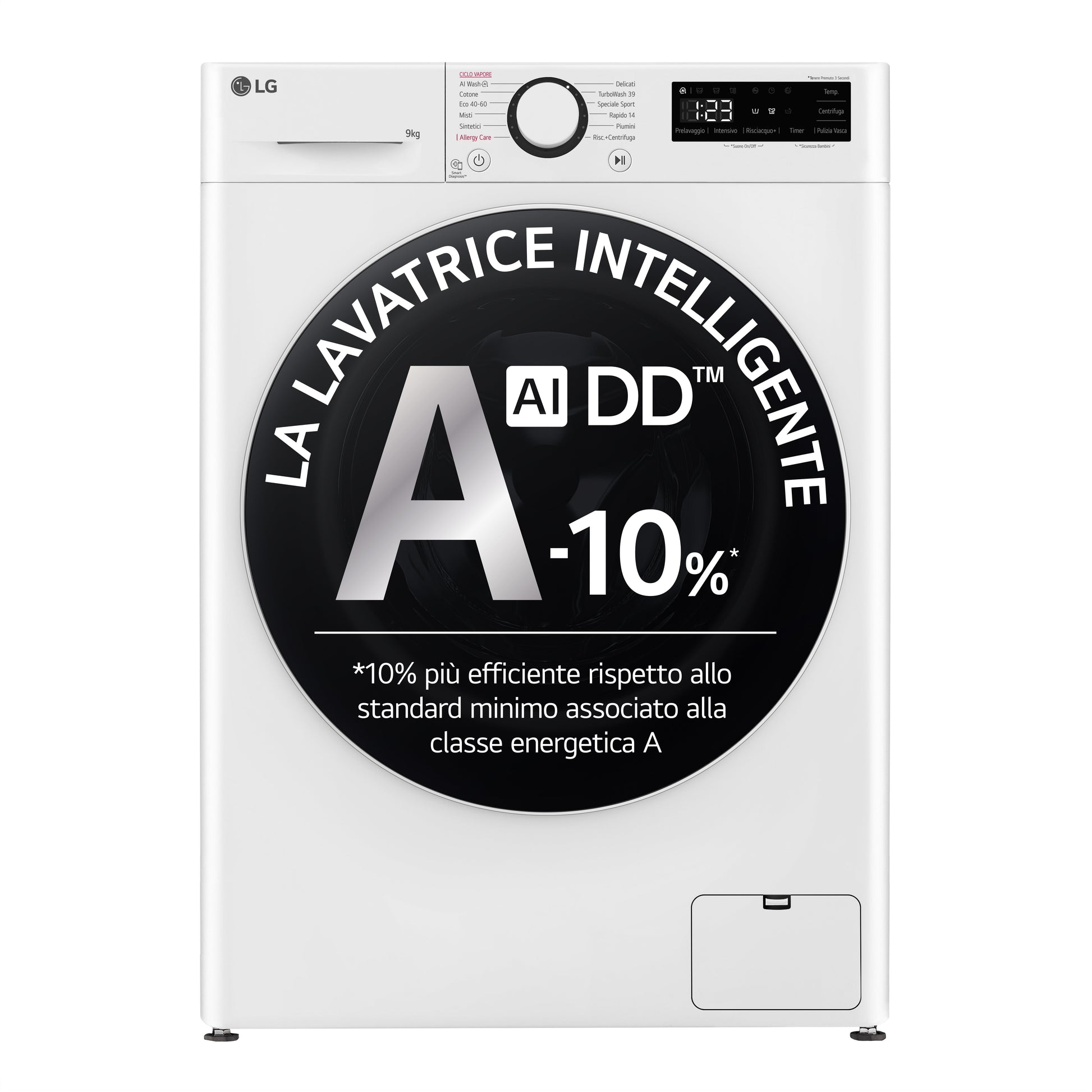 • Capacità cestello: 9 kg