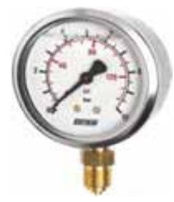 Manometri a molla bourdon in bagno di glicerina, cassa e anello in acciaio inox AISI 304, interni e attacco in ottone OT 58. Norme di riferimento: EN 837-1 - classe di precisione 1.6% Grado di protezione IP67