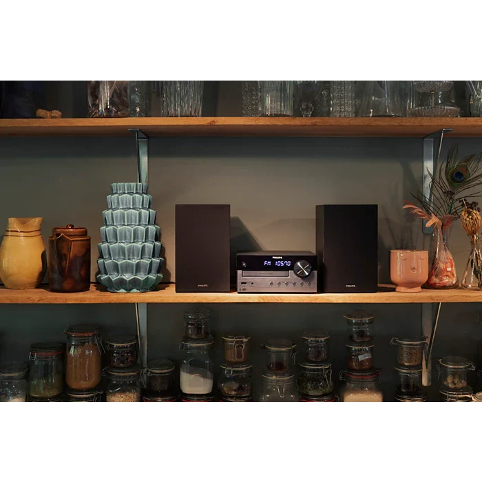 Questo sistema micro dal look classico garantisce un'esperienza d'ascolto domestico più ricca: radio DAB+/FM digitale cristallina, musica e podcast in streaming e CD, il tutto con un audio ricco da 60 W. È possibile collegare altre sorgenti tramite USB o ingresso audio.