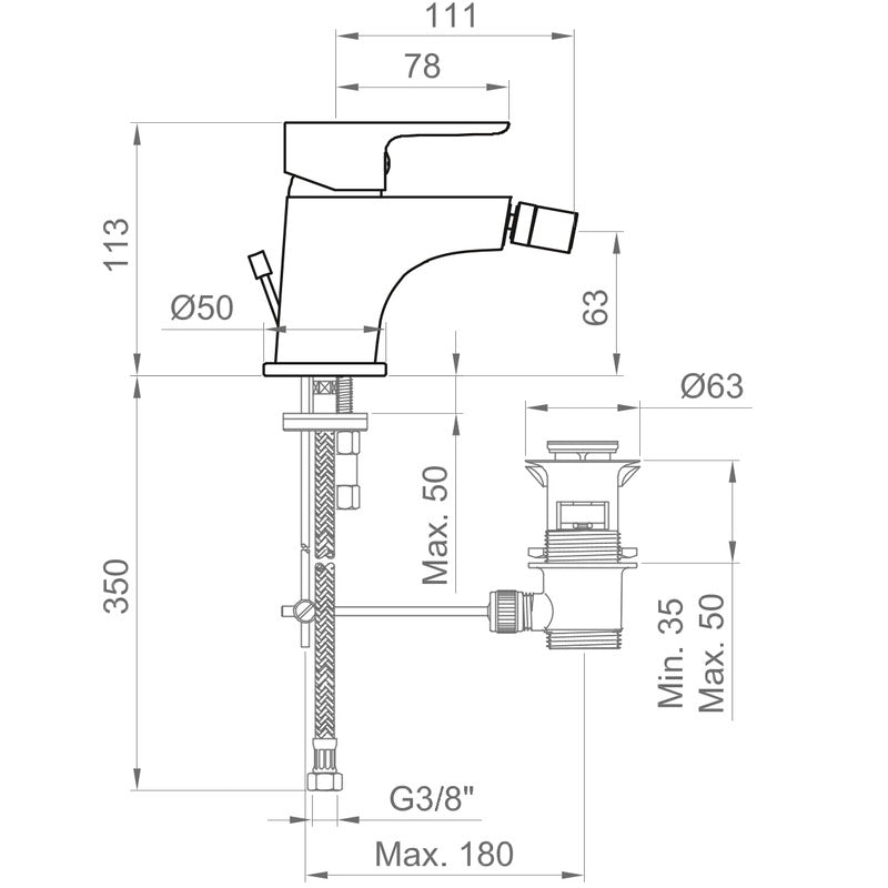 • Compatibilità: bidet con foro Ø35 e spessore max 50 mm