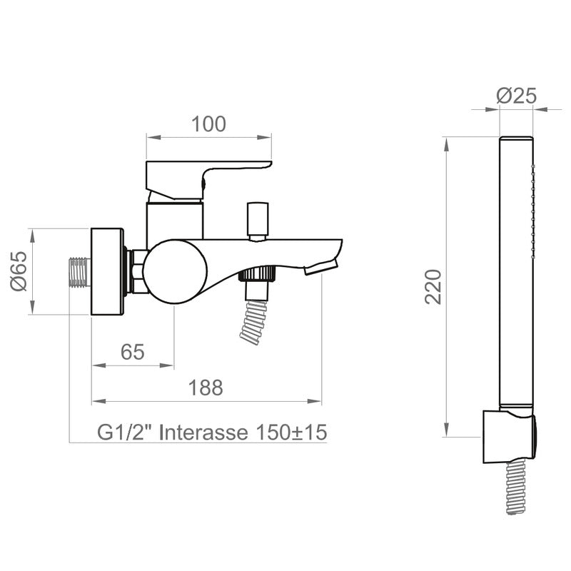 Miscelatore esterno vasca con dotazione, un prodotto classico e senza tempo.