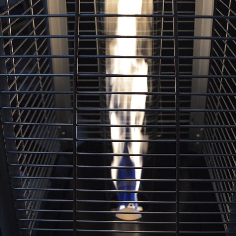 Trasmette calore per irragiamento nelle giornate più fredde, Italkero Patio ha una potenza massima di 13 kW.