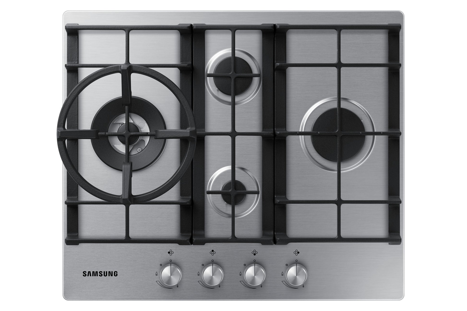 Samsung NA64H3031BS Piano cottura a gas 60cm 4 bruciatori Griglie in ghisa, Inox.