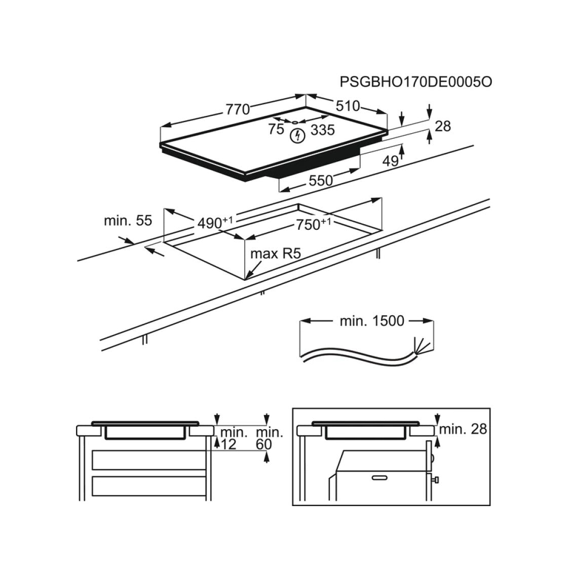 • Larghezza: 770 mm, Profondità: 510 mm, Altezza: 28 mm