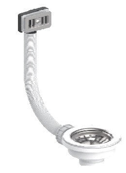 Piletta per lavello in resina con troppo pieno rettangolare e diametro 90°. Il cestello raccoglie eventuali residui alimentari, impedendo la possibile otturazione degli scarichi. Portata acque conforme alle norme vigenti.