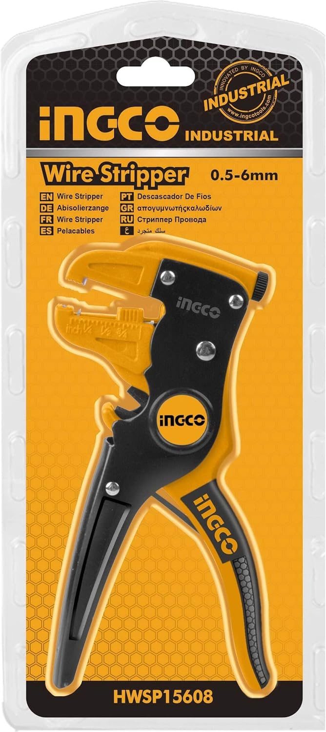 Pinza spellafili INGCO HWSP15608, autoregolabile con dispositivo di taglio integrato è uno strumento pratico e versatile per lo spogliamento e il taglio di fili di rame e alluminio.