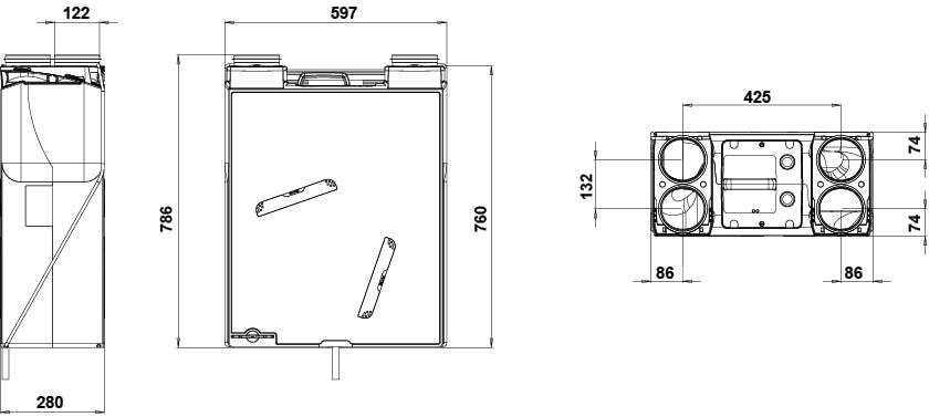 L’accessibilità ai filtri su entrambi i lati e il gruppo motore ispezionabile sul lato superiore consente l’installazione sia con condotti di immissione/espulsione aria da/verso l’esterno sul lato destro che sul lato sinistro;