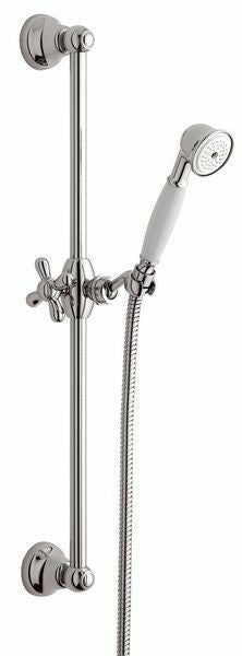Asta saliscendi completa di doccia in ottone e flessibile in ottone LL. 150 cm, senza presa acqua.