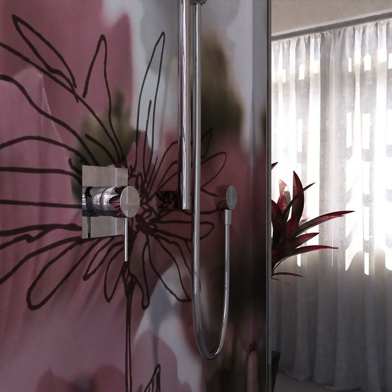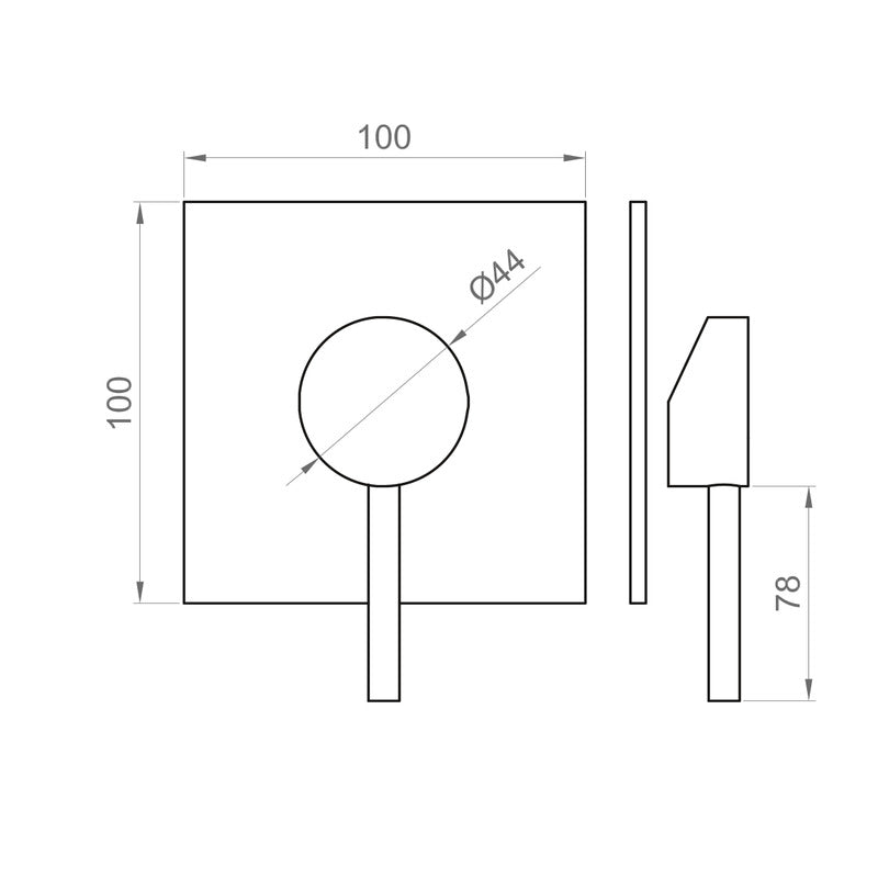 Questo set esterno per incasso doccia universale ad una via, è composto da una piastra quadrata ed una leva.