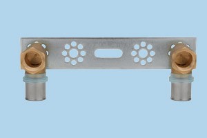 Staffa con raccordi terminali curvi 90°, per attacchi lavabo, bidet, vasca e doccia parete.