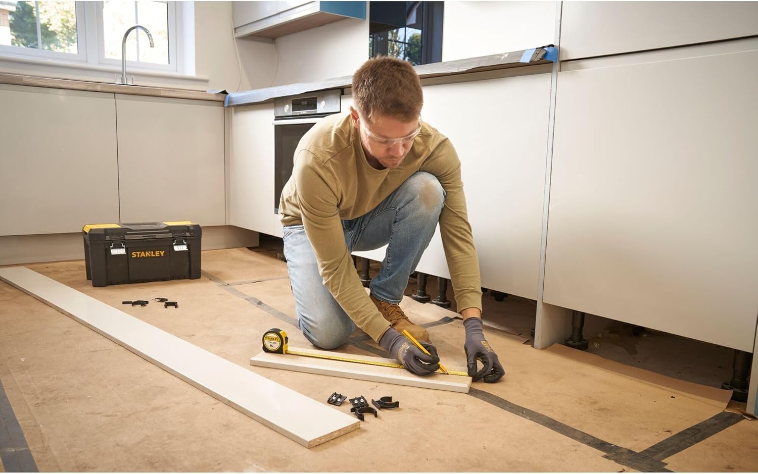Cassa in ABS antiurto, molto compatta. Rivestimento in gomma antiscivolo. Nastro di qualità professionale con verniciatura polimerizzata e rivestito con pellicola in materiale sintetico Tylon (spessore 0,14 cm). Clip di aggancio.