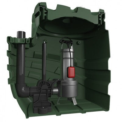 La pompa installata all’interno della vasca consente il rilancio delle acque in fognatura. La vasca è predisposta per numerose possibilità di collegamento delle tubazioni di ingresso, uscita e ventilazione, consentendo un utilizzo adeguato anche in spazi limitati.
