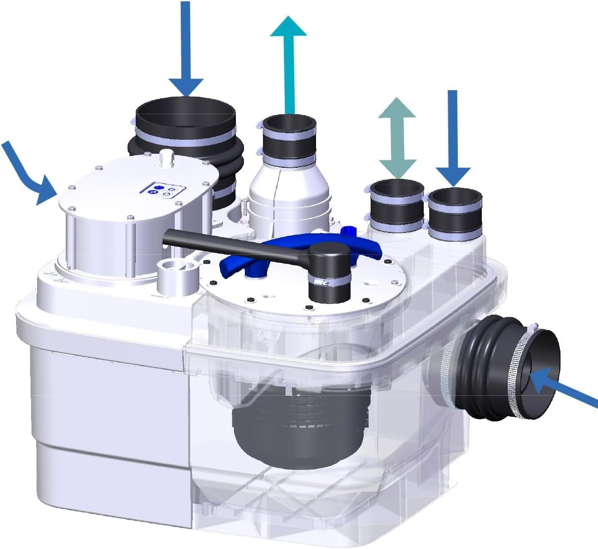 Il SANICUBIC 1 è una stazione di sollevamento dotata di un sistema di triturazione ad elevate prestazioni. È stato progettato appositamente per un uso domestico ed evacua tutte le acque di scarico e le acque nere di un'intera villetta.