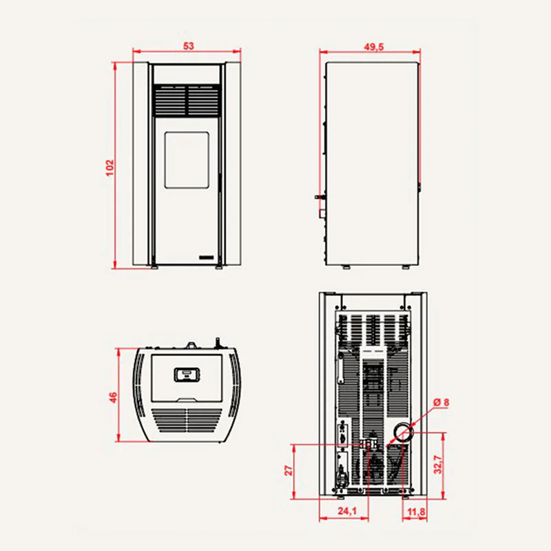 Stufa a Pellet ad Aria Palazzetti Ecofire Milù 8 Kw - Vari Colori