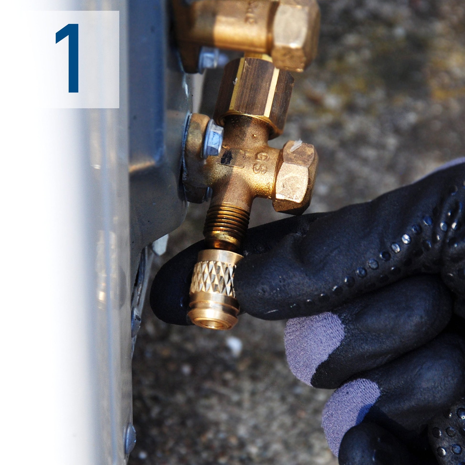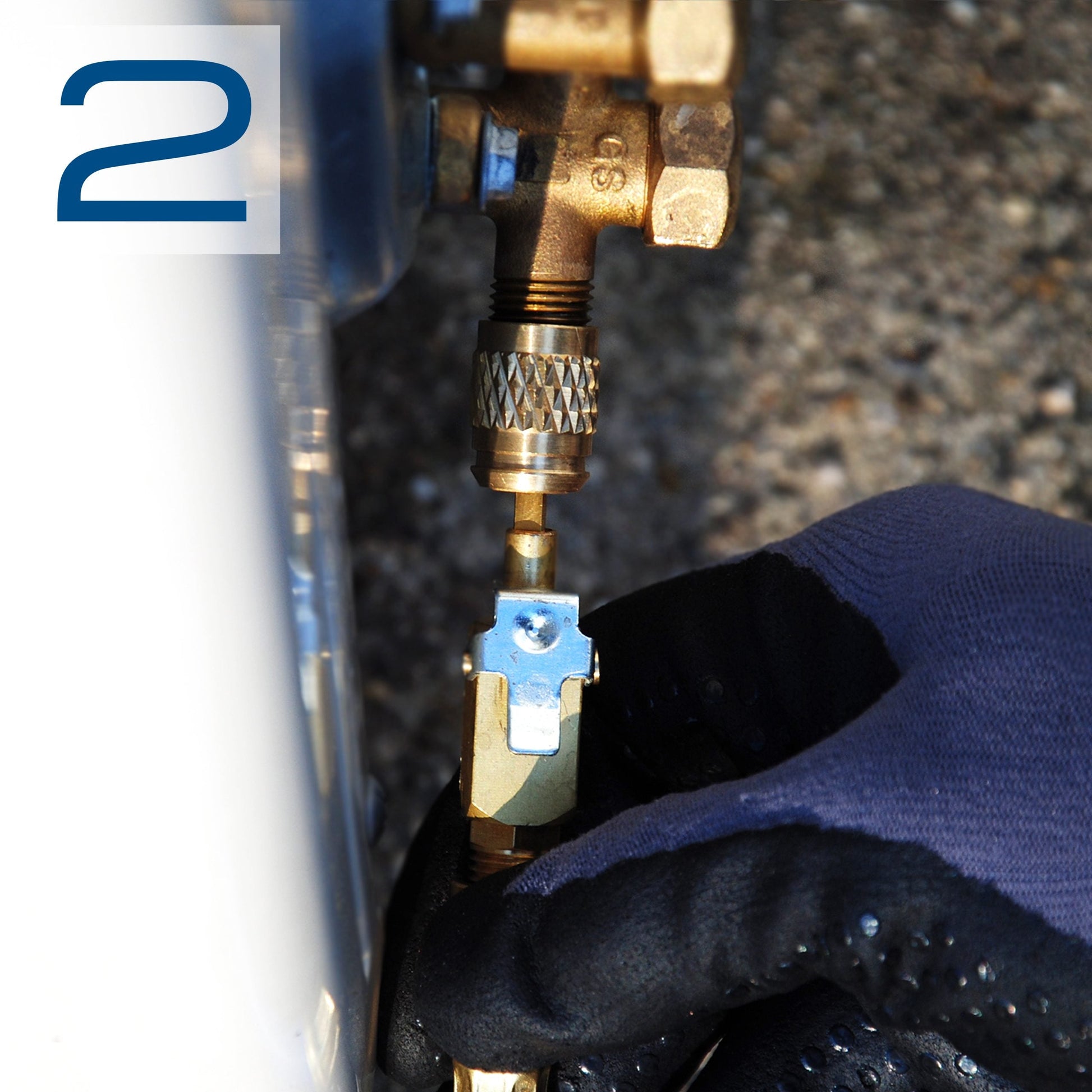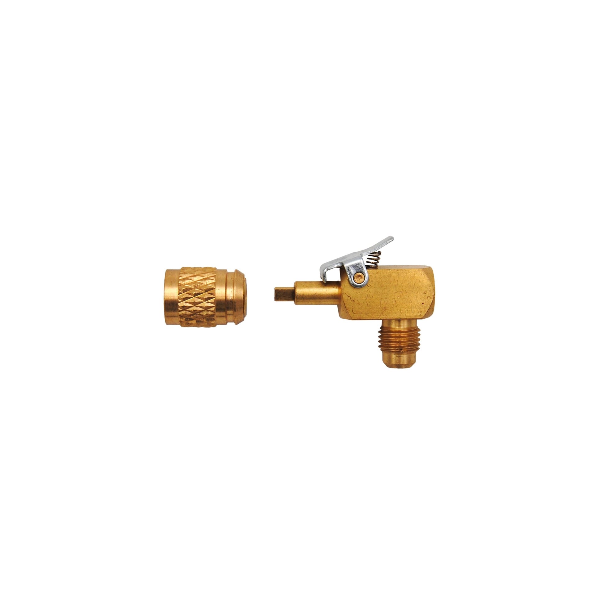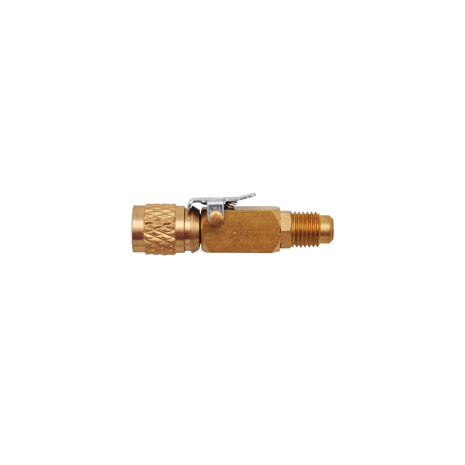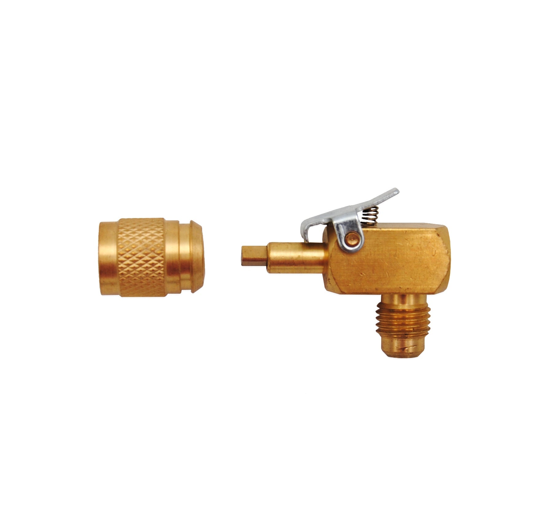 Innesti dritti ed angolati che permettono il collegamento e lo sgancio della tubazione flessibile al rubinetto di servizio della motocondensante, senza perdite di gas refrigeranti ed olio.