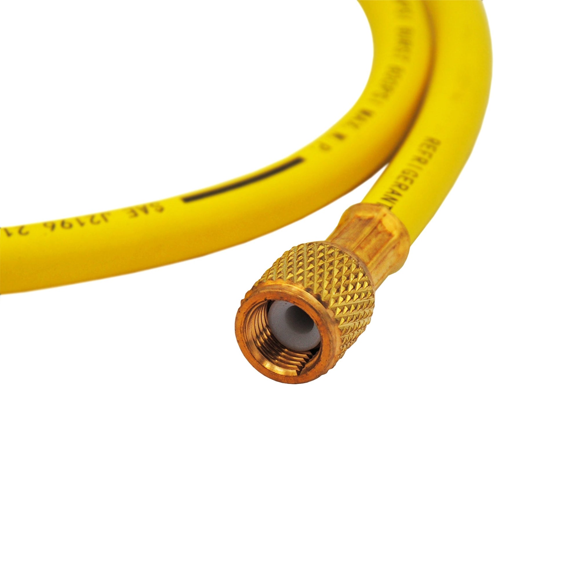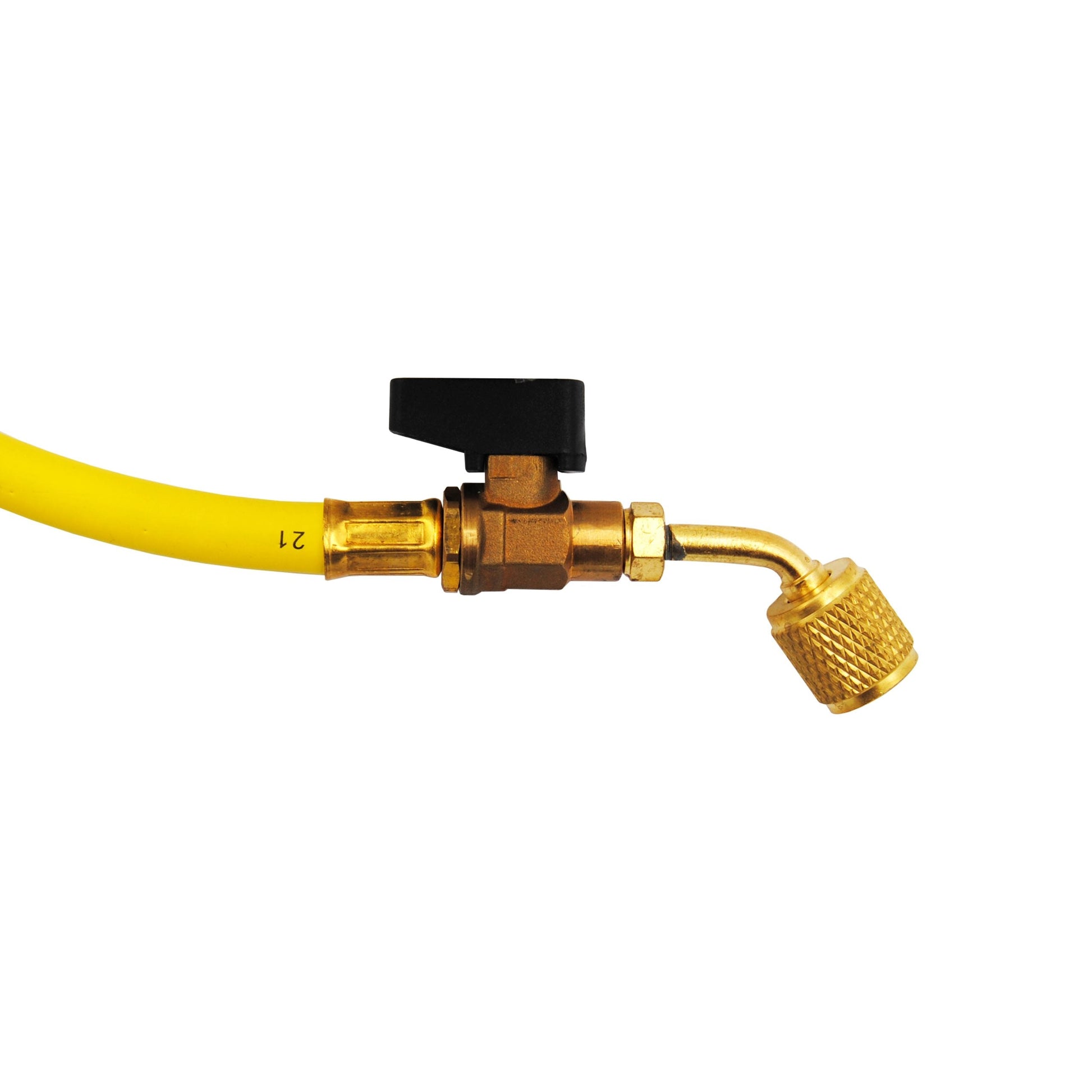 Tubazione flessibile con barriera di nylon e rubinetto a 45° per vuoto, da utilizzare per il collegamento tra la pompa e il gruppo manometrico.