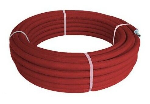 Tubo multistrato in rotoli preisolato PE-XC rosso, varie misure.
