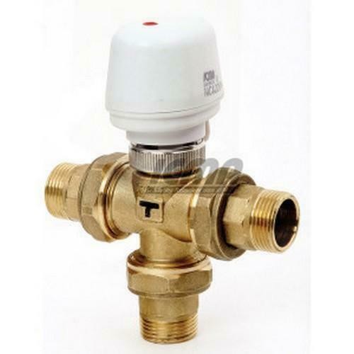 Valvola di zona a 3 vie a pistone, varie misure, con attuatore elettrotermico normalmente chiuso con microinterruttore di fine corsa per contatto pulito.