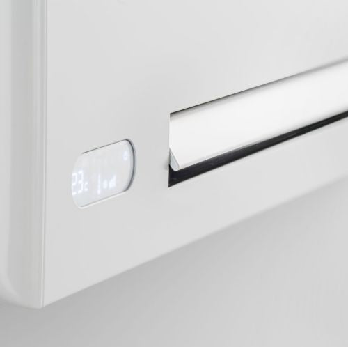 I ventilconvettori Filomuro si distinguono per la loro profondità: appena 128 millimetri. Il minimo ingombro visivo per inserirsi con eleganza in ogni ambiente, domestico o di ufficio, e adattarsi a qualsiasi tipo di arredamento. Un fancoil estremamente sottile e anche super silenzioso grazie a un attento studio del disegno del prodotto, la scelta dei migliori materiali - come la struttura metallica che minimizza le vibrazioni - e la ventola tangenziale perfettamente ottimizzata.